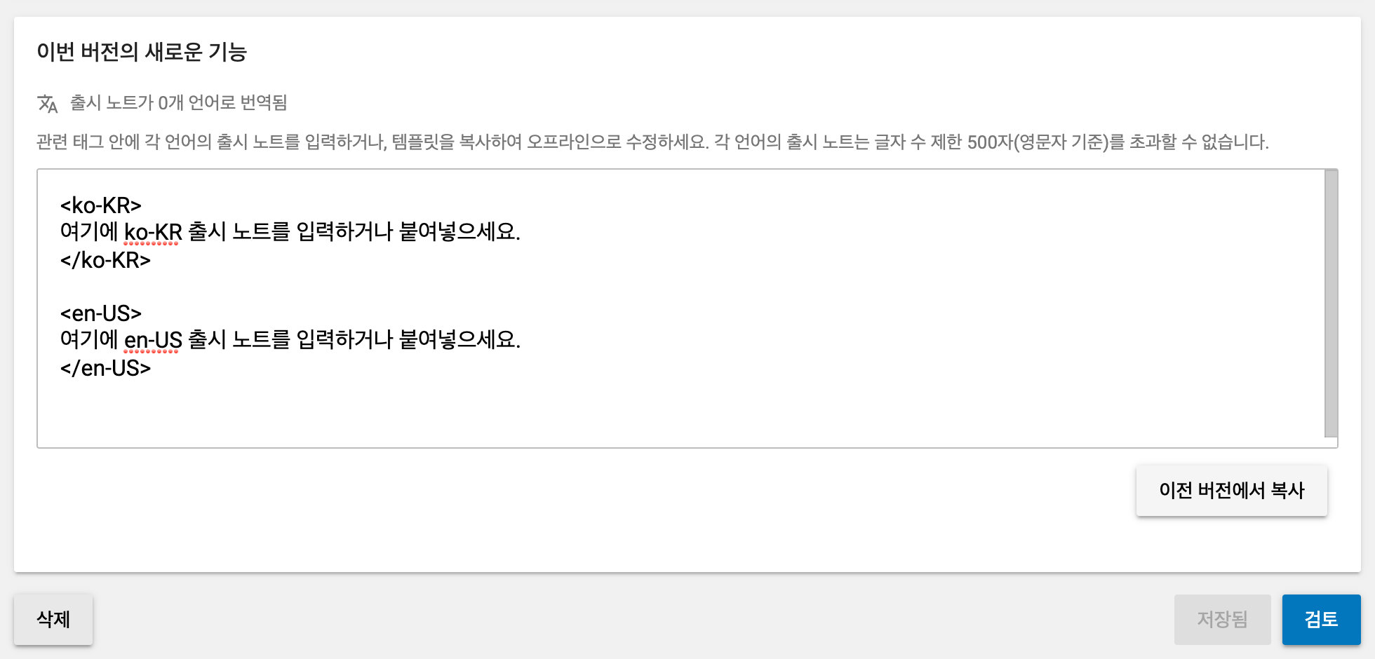 릴리즈 노트에도 해당 언어로 반영할 수 있다.
