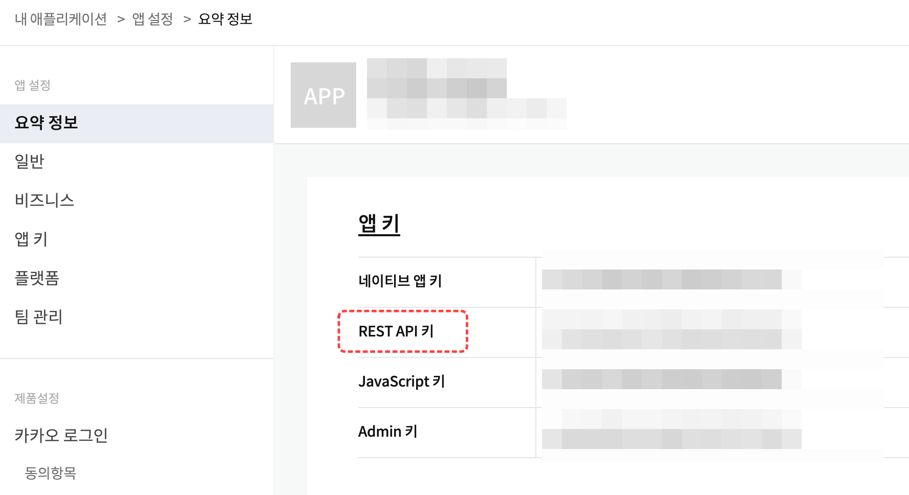 이번 샘플에는 카카오 검색 API가 사용된다. 키를 발급받아야 하는데 어떻게 하는지 아래 이미지로 소개한다.