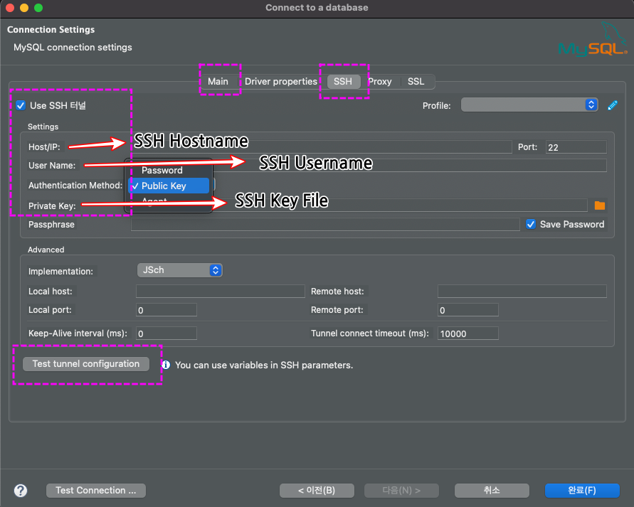 - 워크벤치의 "Standard TCP/IP over SSH" 세팅을 디비버에서 하고 싶은 분