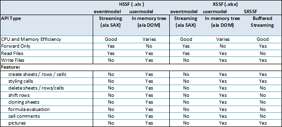 POI에서는 Workbook을 생성해서 원하는 엑셀 포맷을 읽거나 쓸 수 있다. Workbook은 엑셀 통합 문서이다. 그 내부에 Sheet가 여러개 존재할 수 있다. 이 Sheet는 페이지와 유사한 개념이다. MS 오피스 엑셀 하단에 시트를 구분한 UI를 볼 수 있다. Workbook은 인터페이스이며 이를 구현한 XSSFWorkbook을 생성하여 엑셀 데이터를 담을 준비를 한다. XSSF는 엑셀 파일 포맷 중 하나이다. 아래 표를 보면 알 수 있듯이 Excel '97(-2007) file format인 xls 파일은 HSSF, Excel 2007 OOXML file format인 xlsx 파일은 XSSF라고 부른다.