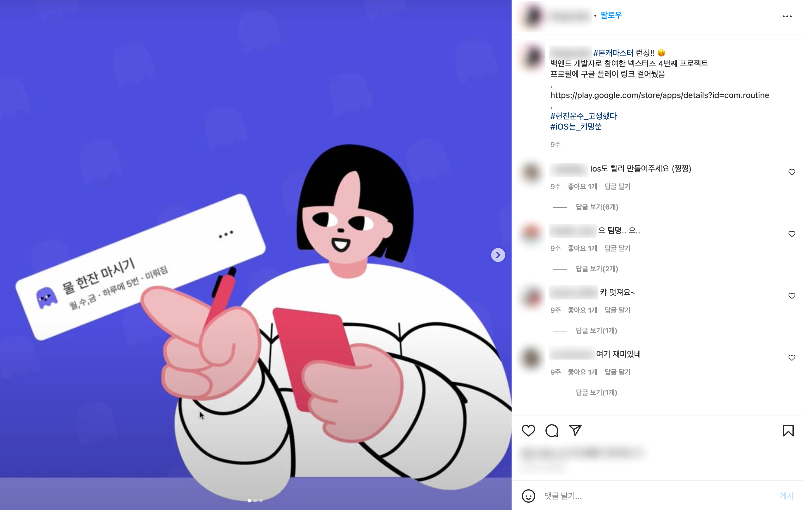 - 넥스터즈 활동 중 앱 출시 자랑한 사진 (위 이미지 참고)