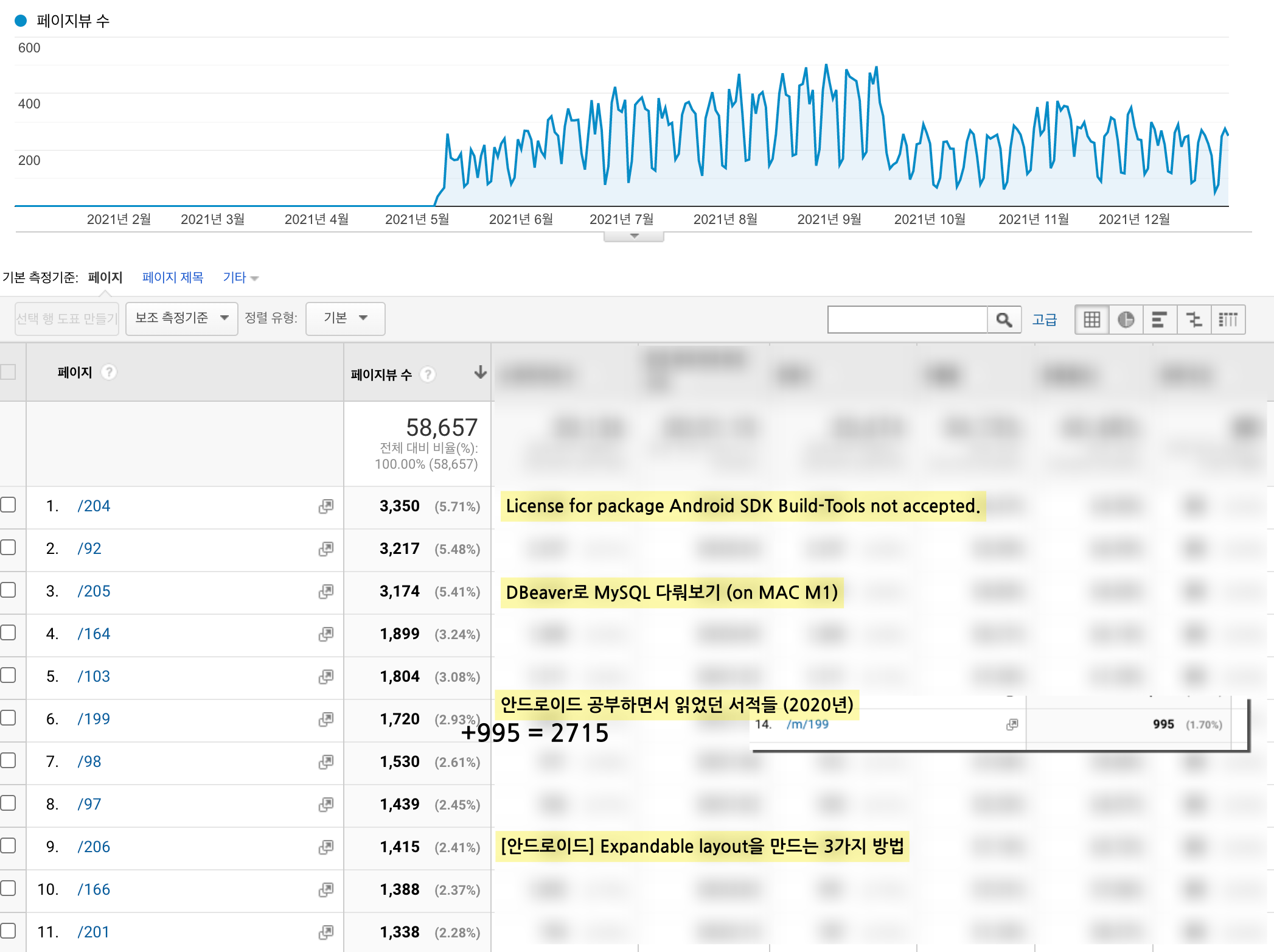조회수가 늘어난 이유로 꾸준한 포스팅 활동에 있다. 내 블로그가 조회되는 정확한 알고리즘을 모르더라도 자료가 많아질수록 노출될 확률도 당연히 높아지는 것이기 때문. 게다가 2021년에 맞는 컨텐츠들이 조회수를 많이 올려주었다. 넥스터즈 관련 포스팅, M1 맥북 이슈, 최근에 출판된 서적 등등.