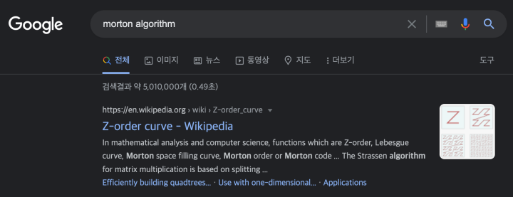 Morton이 누굴까? 힌트는 본 퍼즐의 컨셉이다. SVD는 수학, 알고리즘, 컴퓨터 공학적 개념이라고 언급했다. 이렇게 구글에서 검색을 해보자. "morton algorithm".
