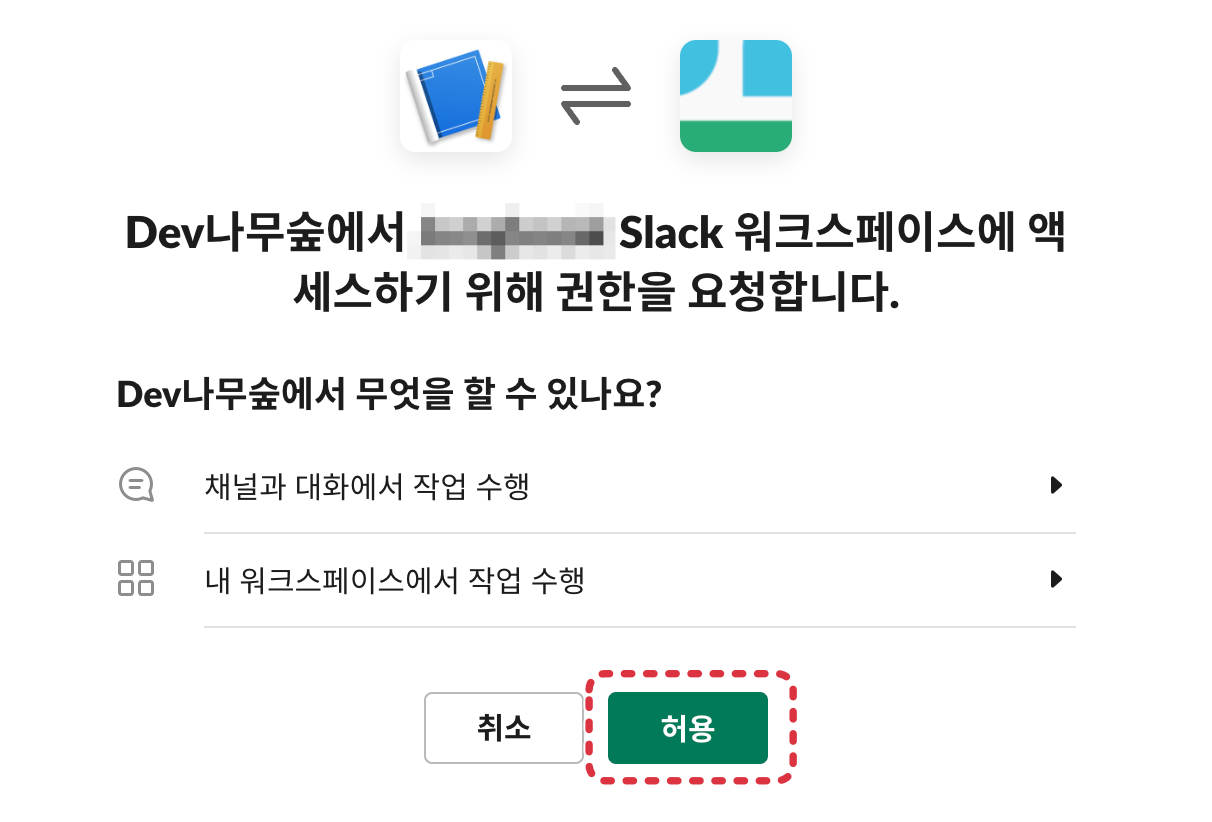 - Slack API 페이지 - Settings - Reinstall to workspace 버튼 클릭