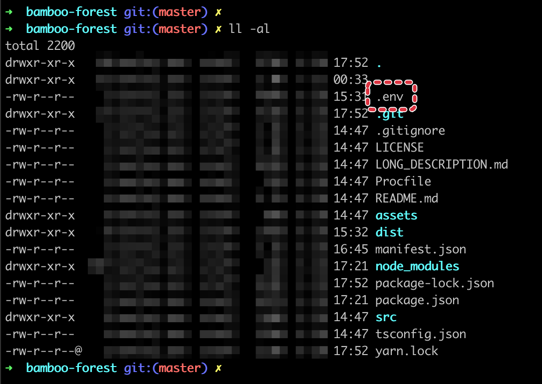 이제 .env 파일을 만들어보자. 재그지그 깃허브에는 .env 파일이 없다. 그래서 새로 생성해줘야 한다. 해당 파일은 고유 번호가 들어가기 때문에 Github에 올라가지 않도록 .gitignore를 통해 관리할 수 있도록 해야한다.