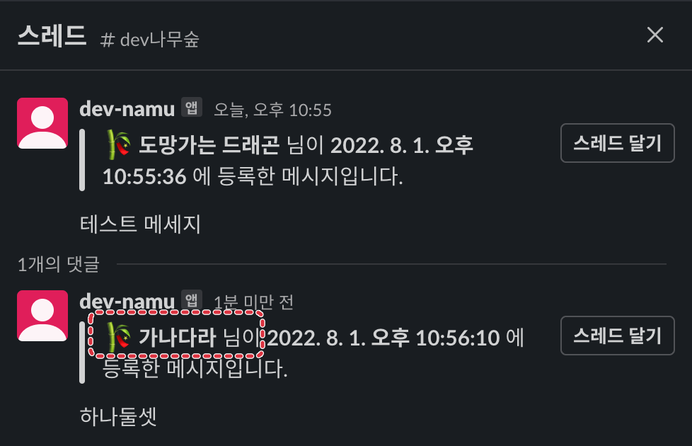 이렇게 해서 재그지그 블로그의 대나무숲 슬랙앱 만들기가 완료되었다. 완성하면 새삼 재그지그님이 대단하게 보인다. 누구나 따라할 수 있도록 설명도 잘하셨고 사소해보이는 아이디어를 이렇게 구현했다는 것도 굉장하고. 이 자리를 빌어 재밌는 경험을 하게해준 재그지그님에게 감사의 인사를 남긴다.