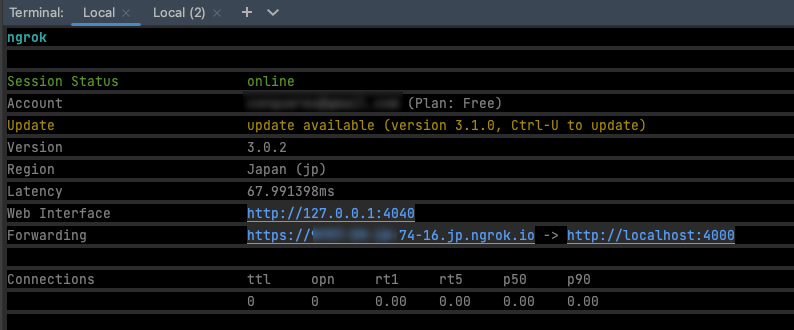 설치가 되었으면 ngrok을 띄워보자. 만약 띄우고자 하는 서비스의 Port가 4000이라고 하면 아래와 같다.
