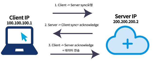 위의 한계점을 해결하고자 나타난 개념이 TCP(Transmission Control Protocol)이다. 위 한계점 중 비연결성을 해결한 개념이다. TCP에서는 3-way handshake 방식으로 연결을 확인할 수 있다. 아래 이미지의 1번처럼 SYN(연결)을 확인하고, 인증(ACK)을 요청한 쪽으로 전달합니다. 다시 클라이언트가 ACK를 보내면 데이터 전송 준비가 된 것이다. 이 방식으로 데이터 전달이 보증되고 순서도 보장할 수 있다.