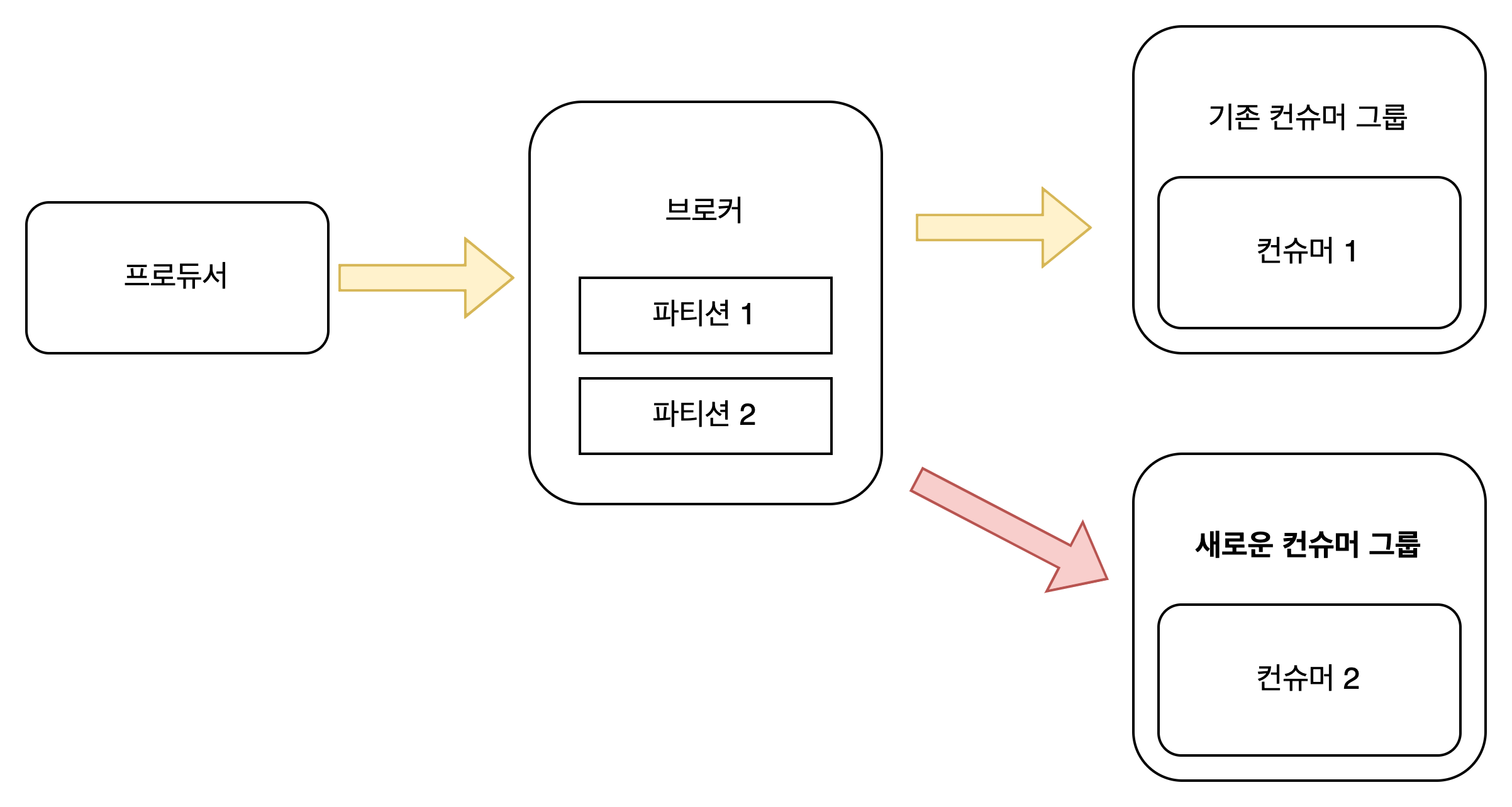 - consumer를 추가하려면 새로운 group도 추가해야 한다. (아래 그림의 빨간색 화살표)