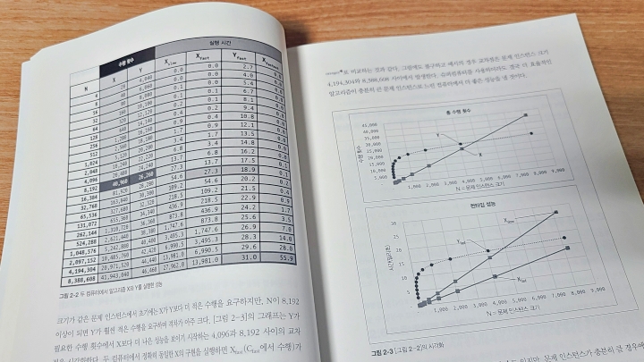 꽃게랑 땡기게 하는 표지를 가진 '똑똑한 코드 작성을 위한 실전 알고리즘'은 코테용으로 읽기는 부적합할 수 있다. 코테보다는 이 책의 타이틀에 등장하는 '실전'이라는 부분에 초점을 맞춰서 볼 필요가 있다. 단순한 문제 풀이식 알고리즘 설명이 아니라 알고리즘의 구조적 배경부터 실전 사용시 기대치, 실제 성능 비교 등이 등장한다.