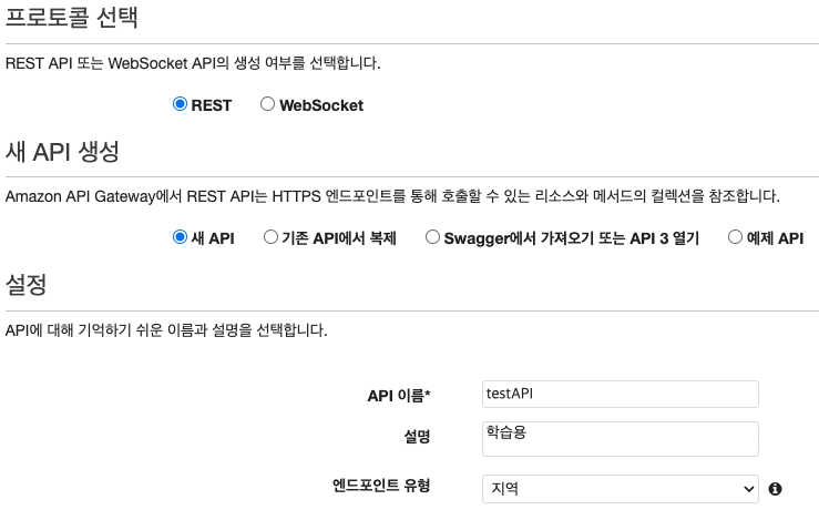 - 새 API 생성 : 새 API