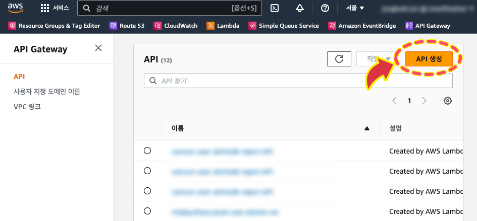 이미 서비스는 만들어져있다고 가정하면 필요한 것은 API Gateway의 API, Lambda, SQS이다. 이제 하나씩 생성해보자.