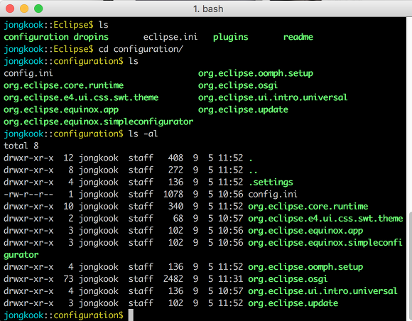 프롬프트 색깔만 바꿔도 개발 능률이 확 바뀐다.컴퓨터 환경이 바뀔 때마다 이걸 다시 세팅하는게 귀찮아서블로그에 간단히 남겨 놓는다. 우선 참고한 블로그는 아래와 같다.http://blog.saltfactory.net/linux/change-prompt-in-terminal.htmlhttp://macdev.tistory.com/32http://goo.gl/ZofmE 그리고 아래와 같이 입력했다.$ vi ~/.bash_profileexport PS1="\e[0;36m\u\e[m::\e[0;33m\W\$\e[m " 이제 전체 파일 볼 때, 유형별 색을 다르게 하는 방법을 찾아봐야겠다. ❅ ❅ ❅ ❅ ❅ ❅ ❅ ❅ 2017.02.14 터미널 ls 파일 리스트 볼 때 색상 옵션 설정https://blog.outs..